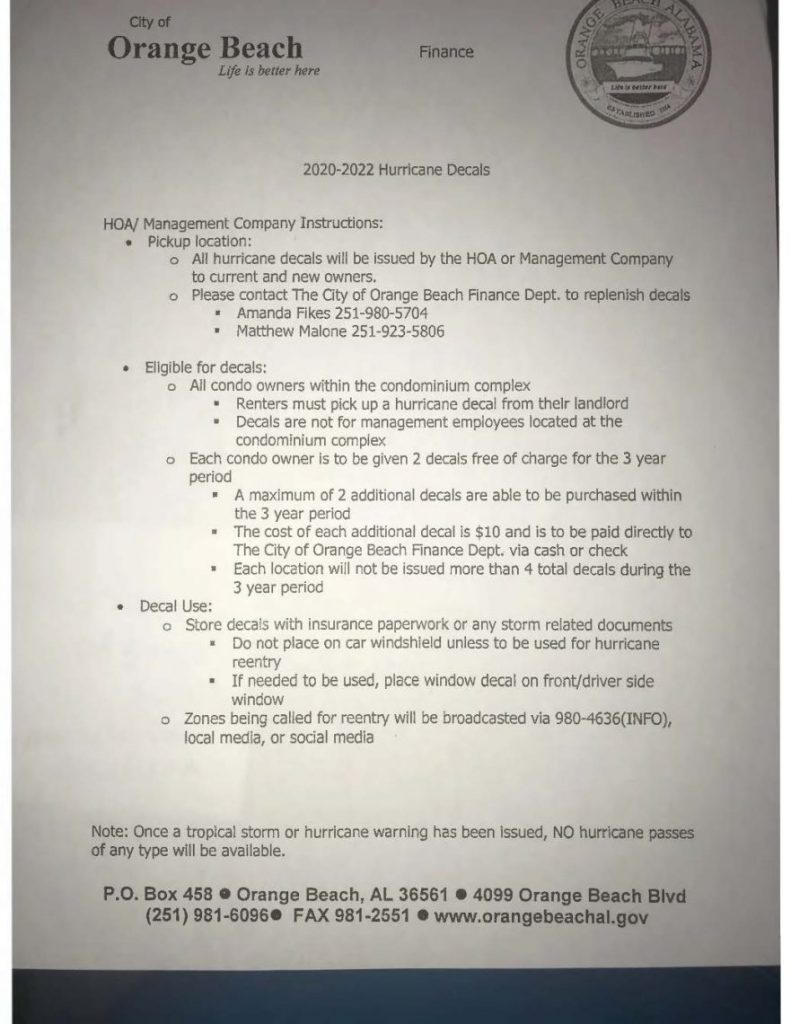 Hello your Hurricane decals went out with your monthly statements for the moth of June. Please make sure that you follow the instruction provided.